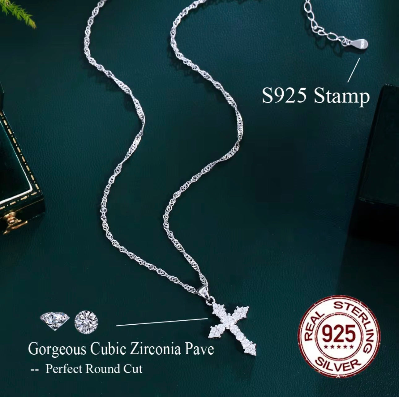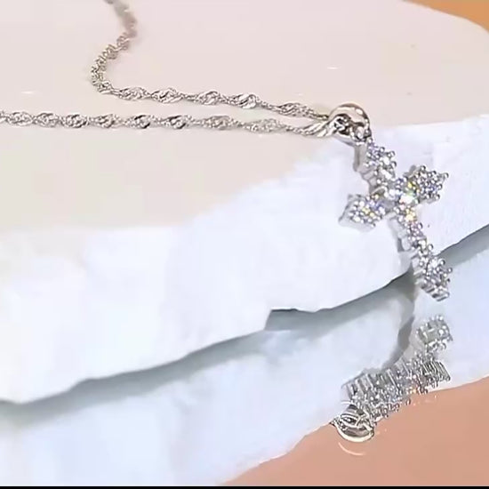 Dianty Chain Link 純銀十字架項鍊 | 925純銀鑲鋯石宗教吊墜