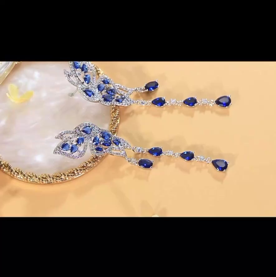皇家藍鋯石蝴蝶耳環 - 對稱翅膀結婚派對款