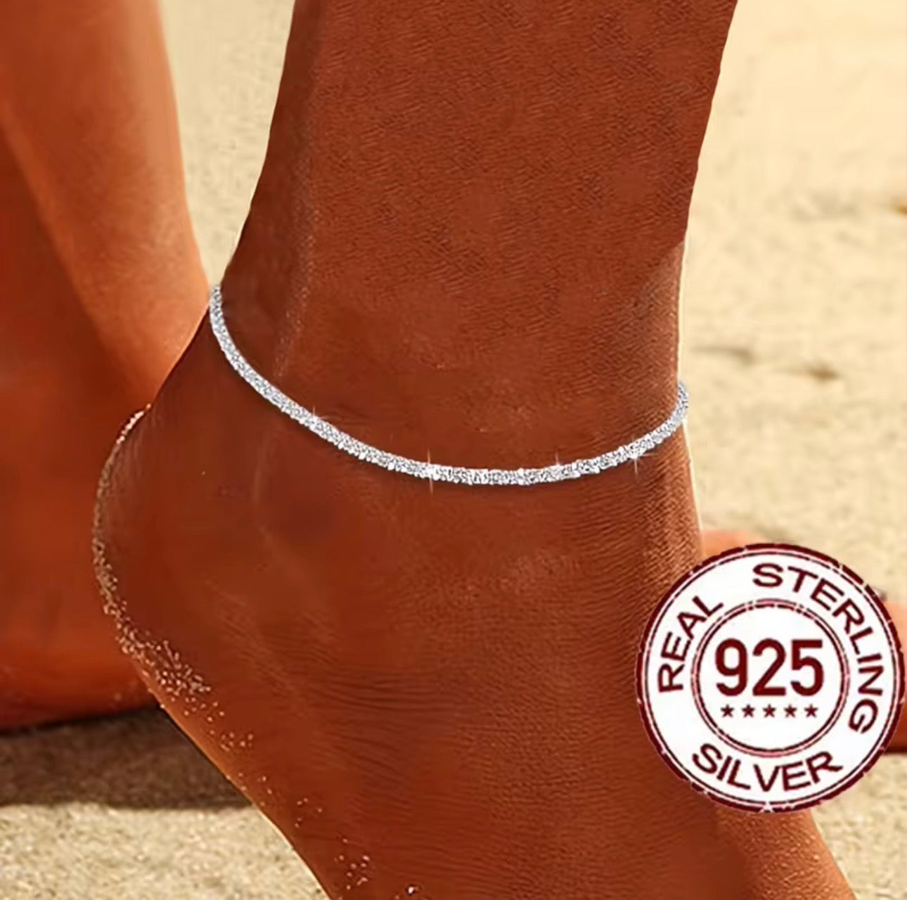 簡約925純銀彷真碎鑽沙灘腳鏈