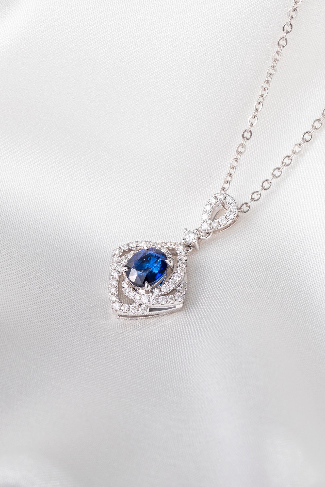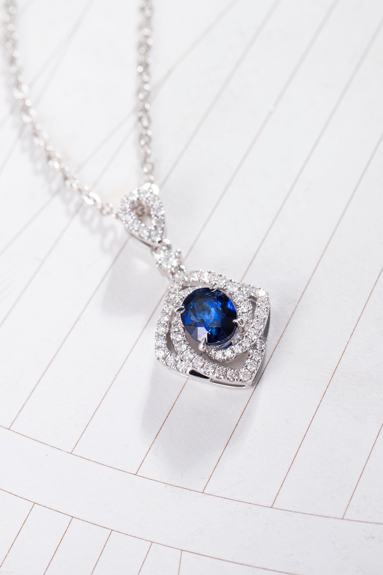 藍寶石鑽石吊墜 | 0.993ct 天然藍寶石 18K金項鍊