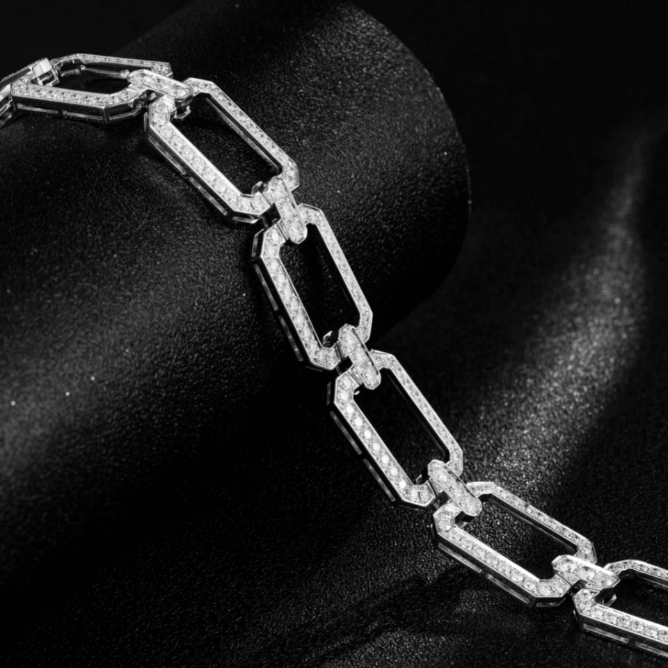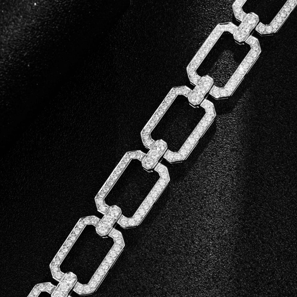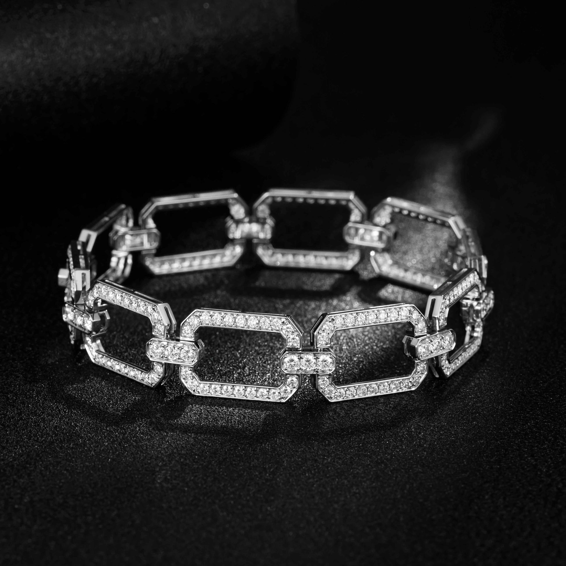 這款精緻的18K金手鏈鑲嵌了250顆培育鑽石,總重3.21克拉,展現璀璨光芒。每一顆鑽石都經過精心挑選,確保最佳的火彩和淨度。